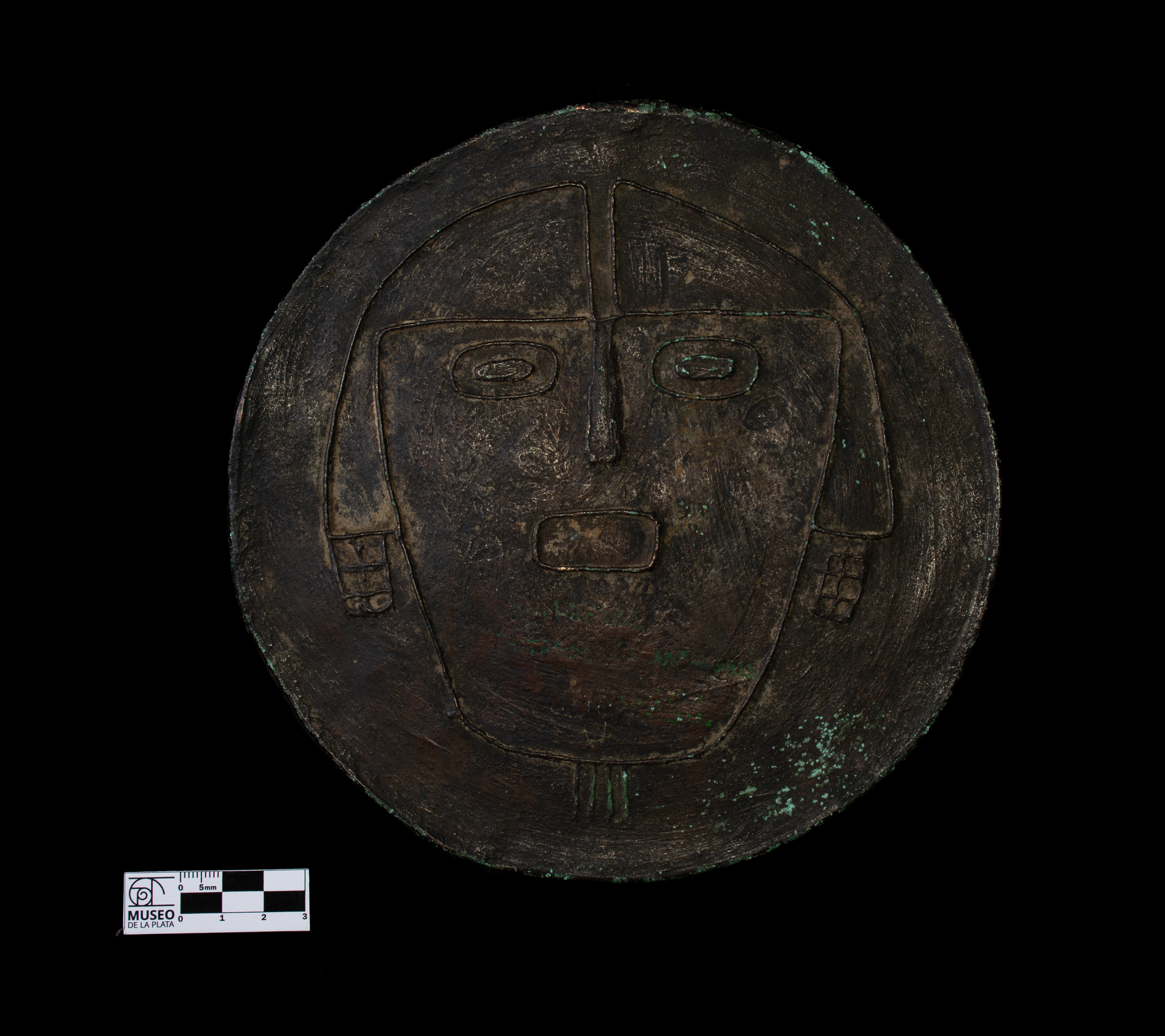 disco de bronce con representacion de rostro humano