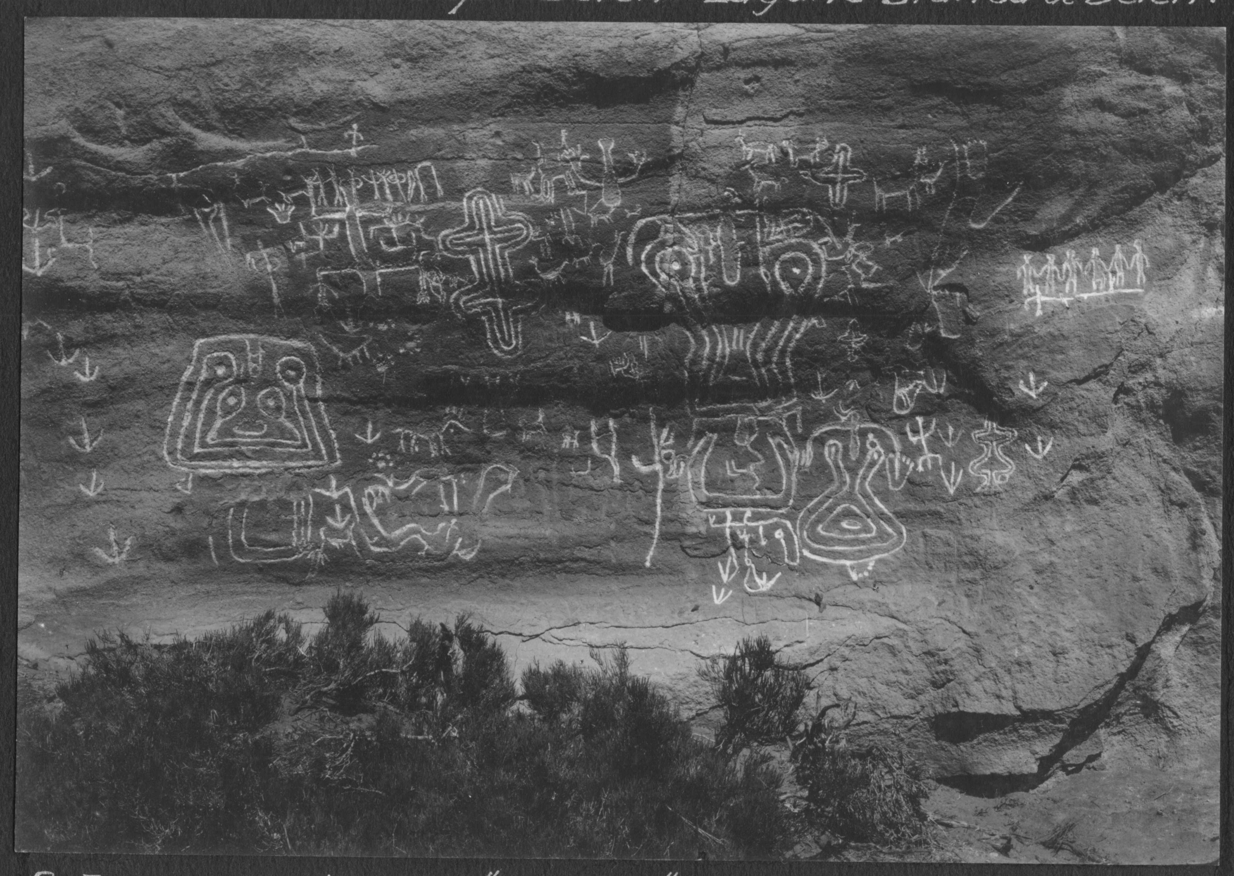 Finizzola, Segundo. 1923. "Peñas grabadas del "Potrero": vista de grabados de la peña grande con frente hacia el Este (6)". MLP-Ar-BMB-F1079. Culturalis. División Arqueología, Museo de La Plata, FCNyM, UNLP.