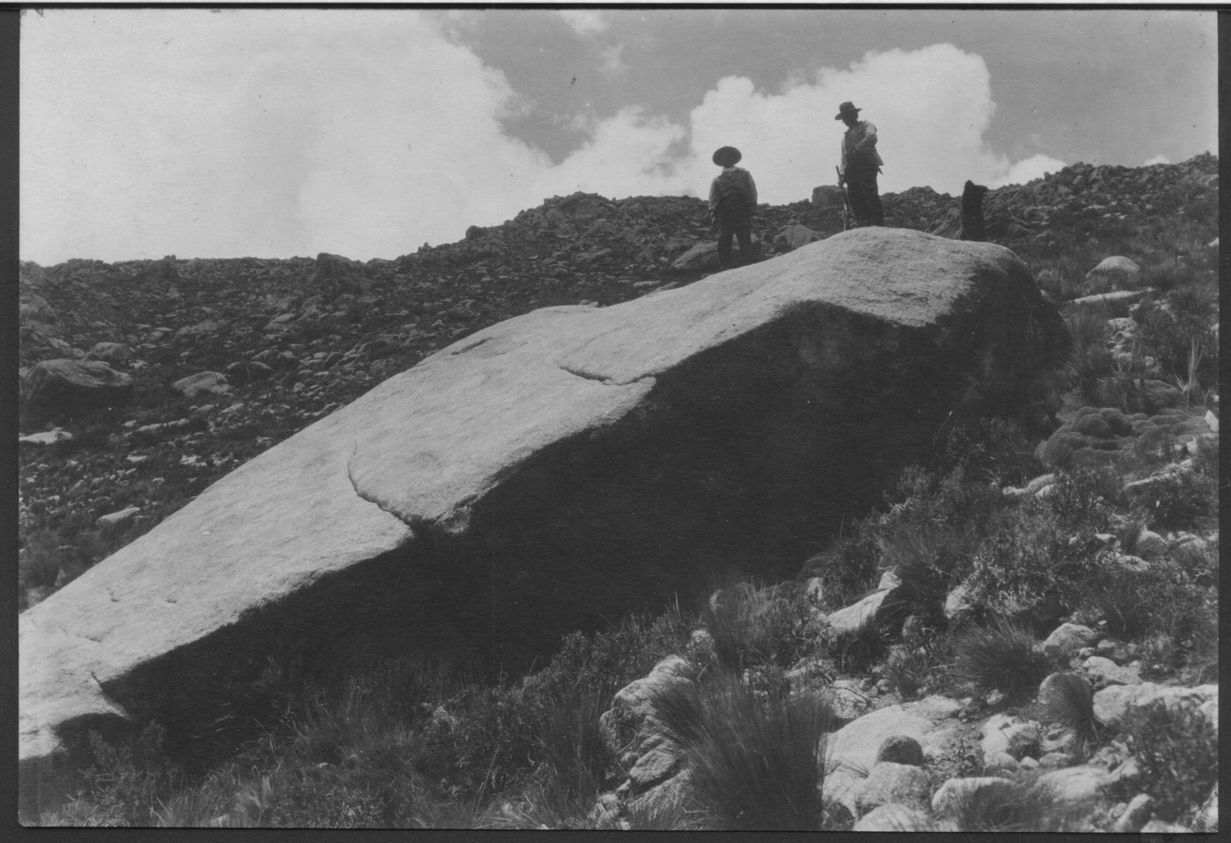 Finizzola, Segundo. 1924. "Gran piedra del Portezuelo de Yaret sobre el cerro moro? con petroglifos". MLP-Ar-BMB-F1145. Culturalis. División Arqueología, Museo de La Plata, FCNyM, UNLP.