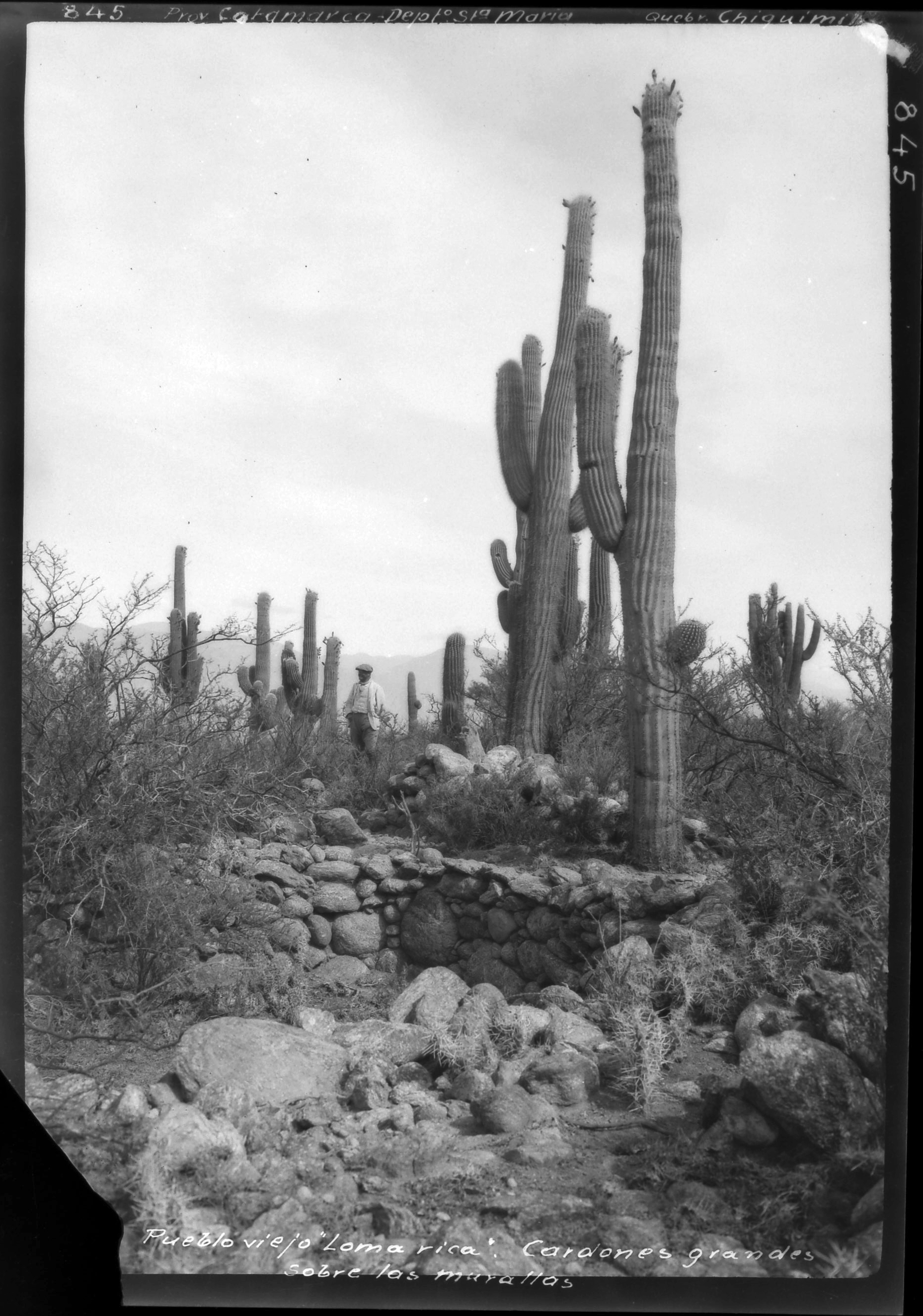 MLP-Ar-BMB-F845 / Pueblo viejo "Loma Rica": cardones grandes sobre las murallas / Benjamín Muniz Barreto