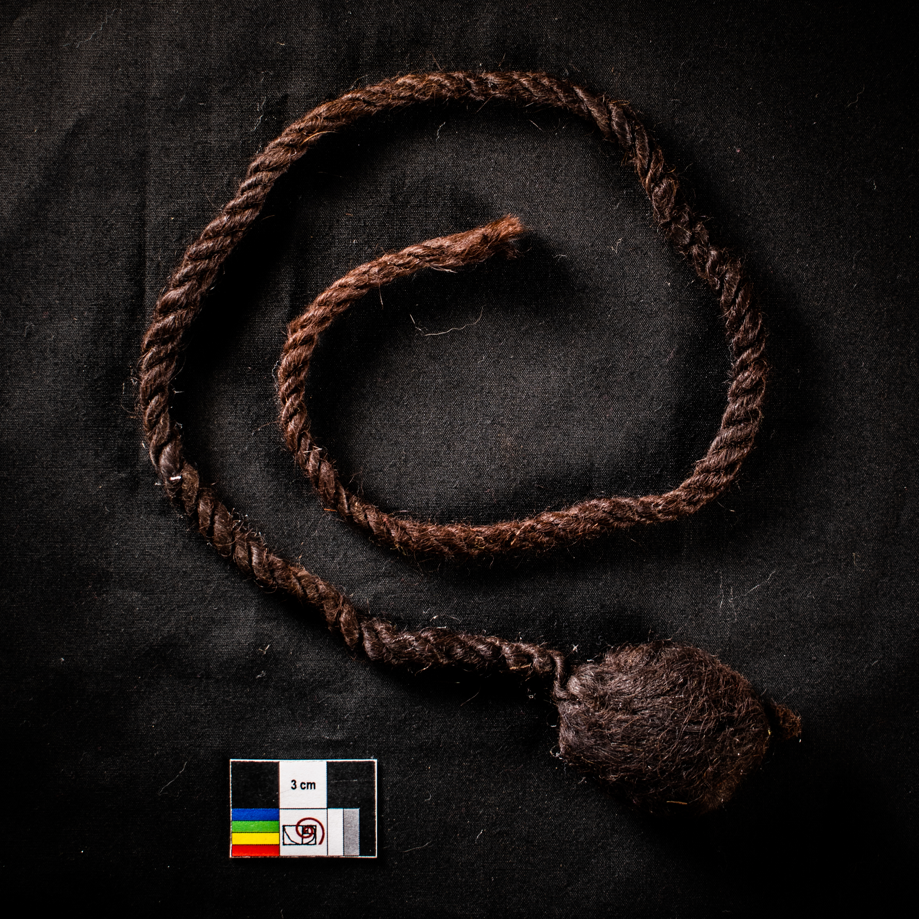 | dc.description | Fragmento de cordón negro, realizado con pelo de alpaca, presenta una borla en uno de sus extremos realizada en fieltro | |