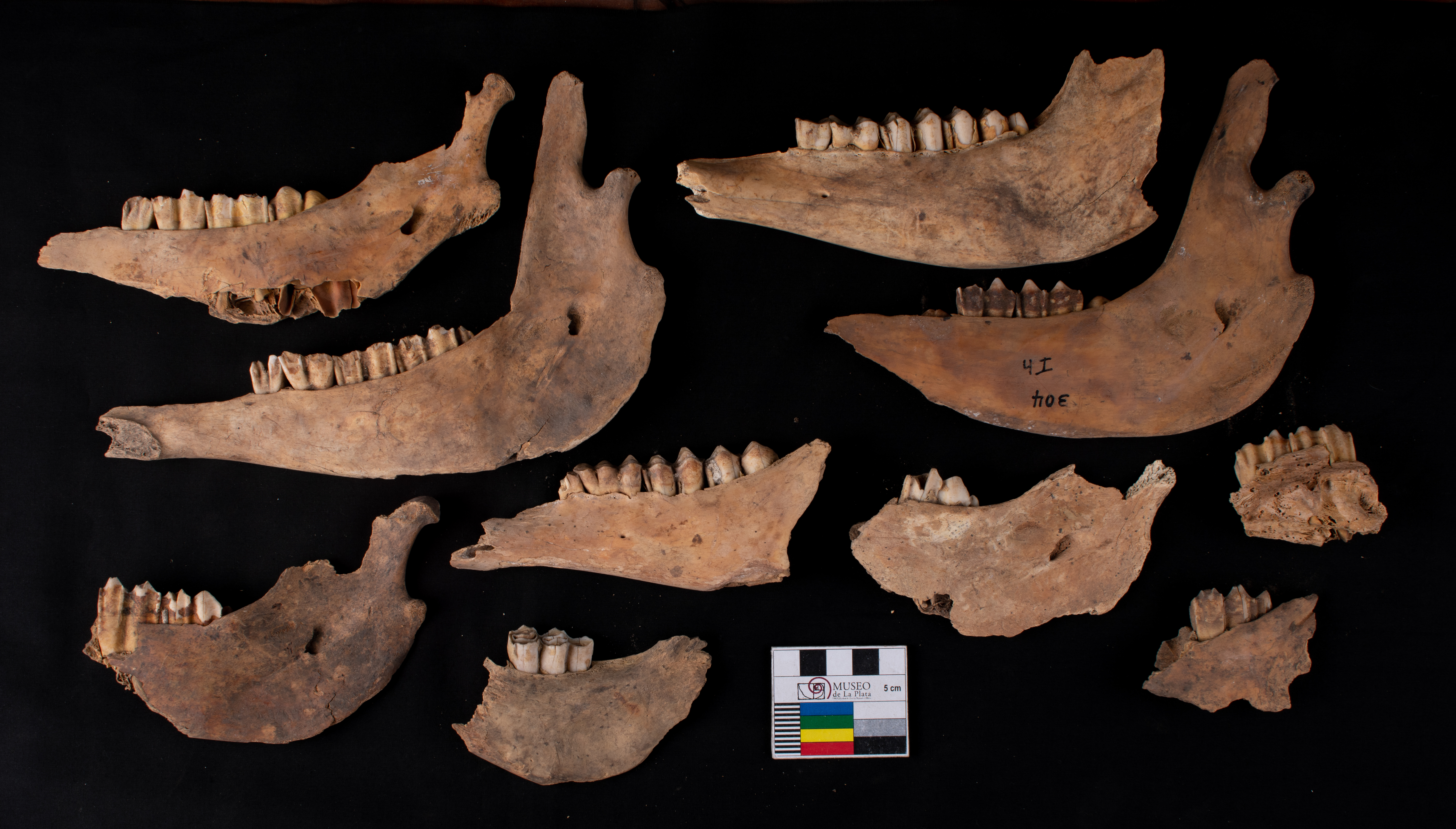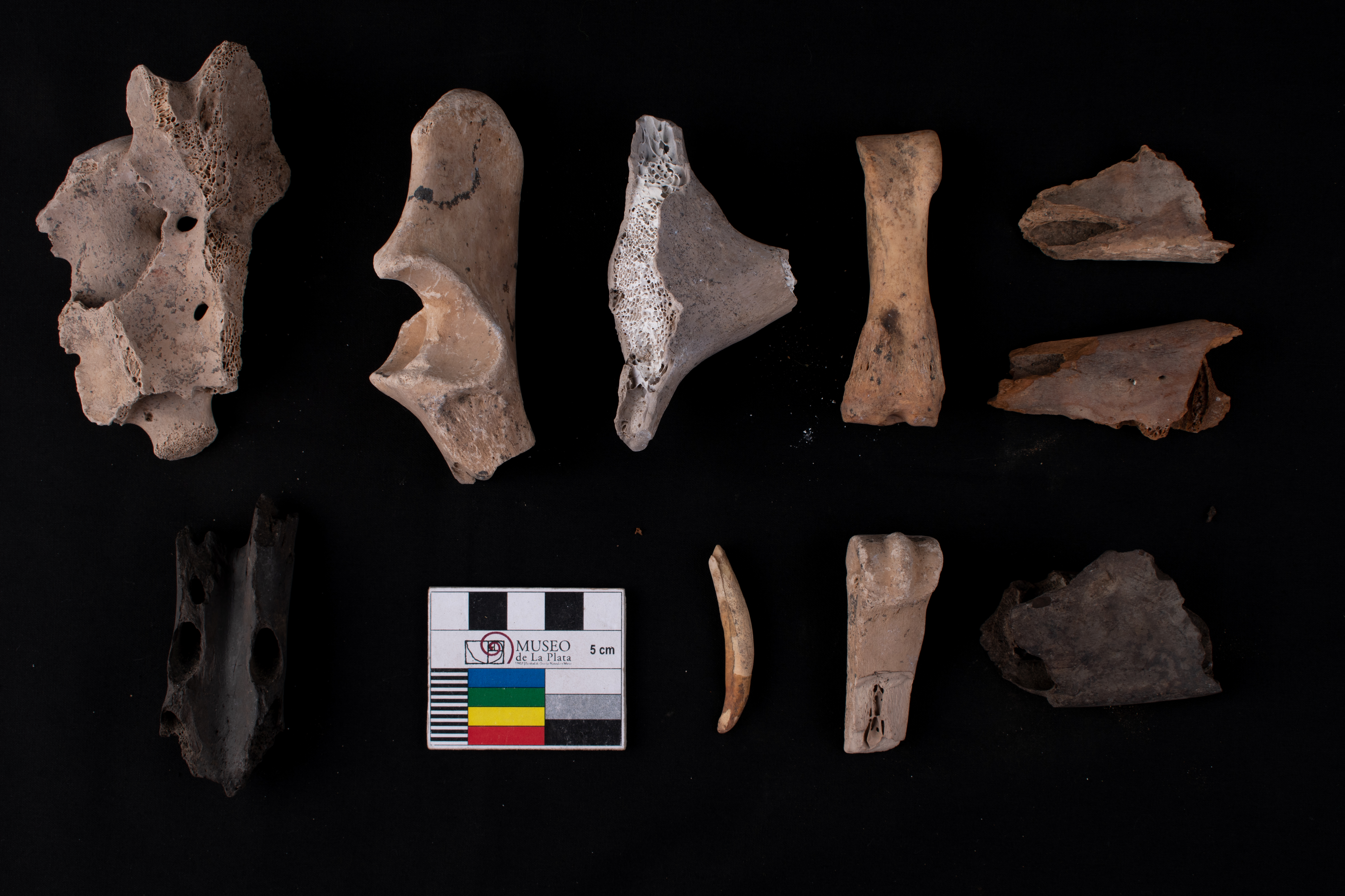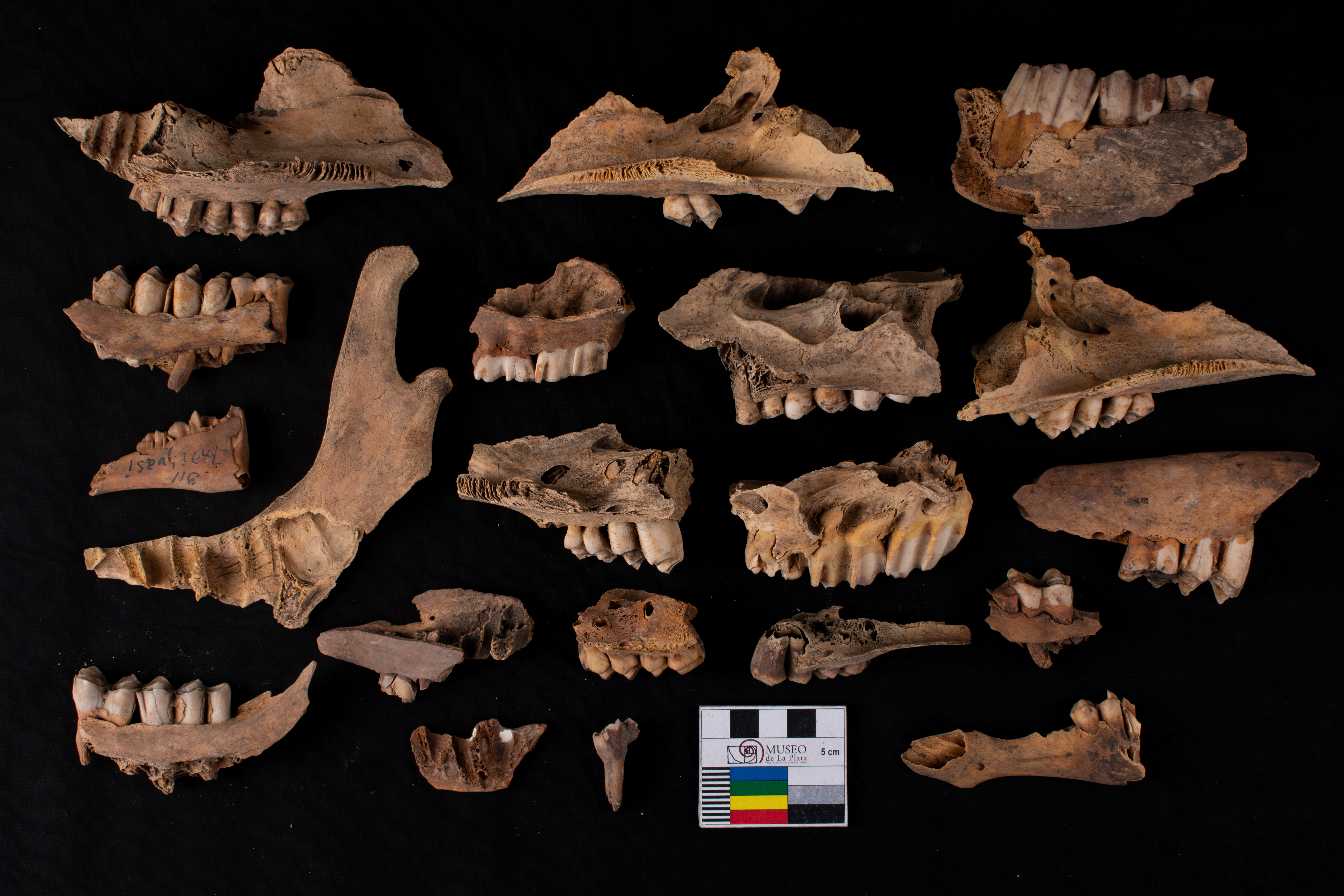 Se observan fragmentos de mandibulas, dientes, falanges, sacro y otros huesos indeterminados