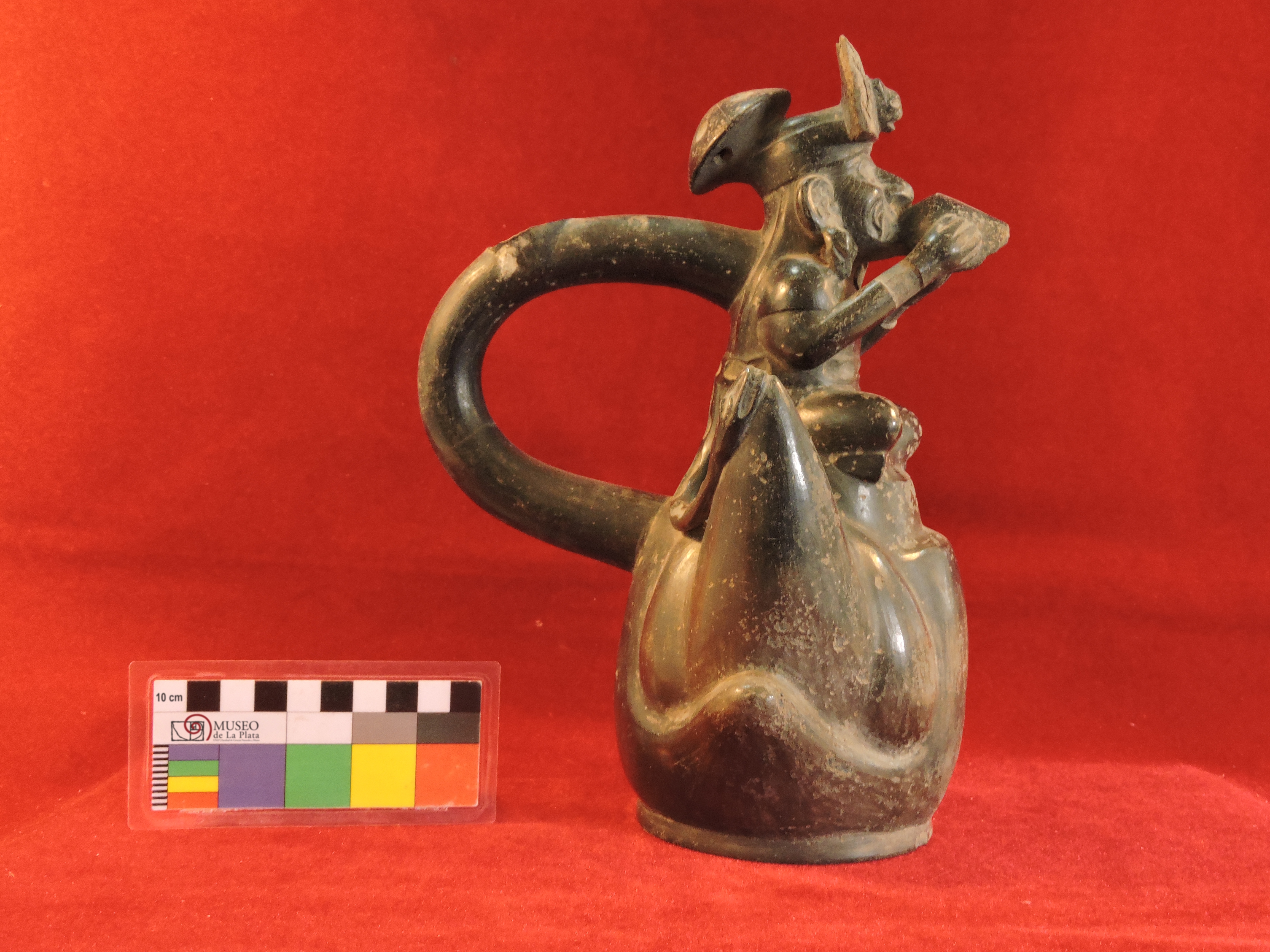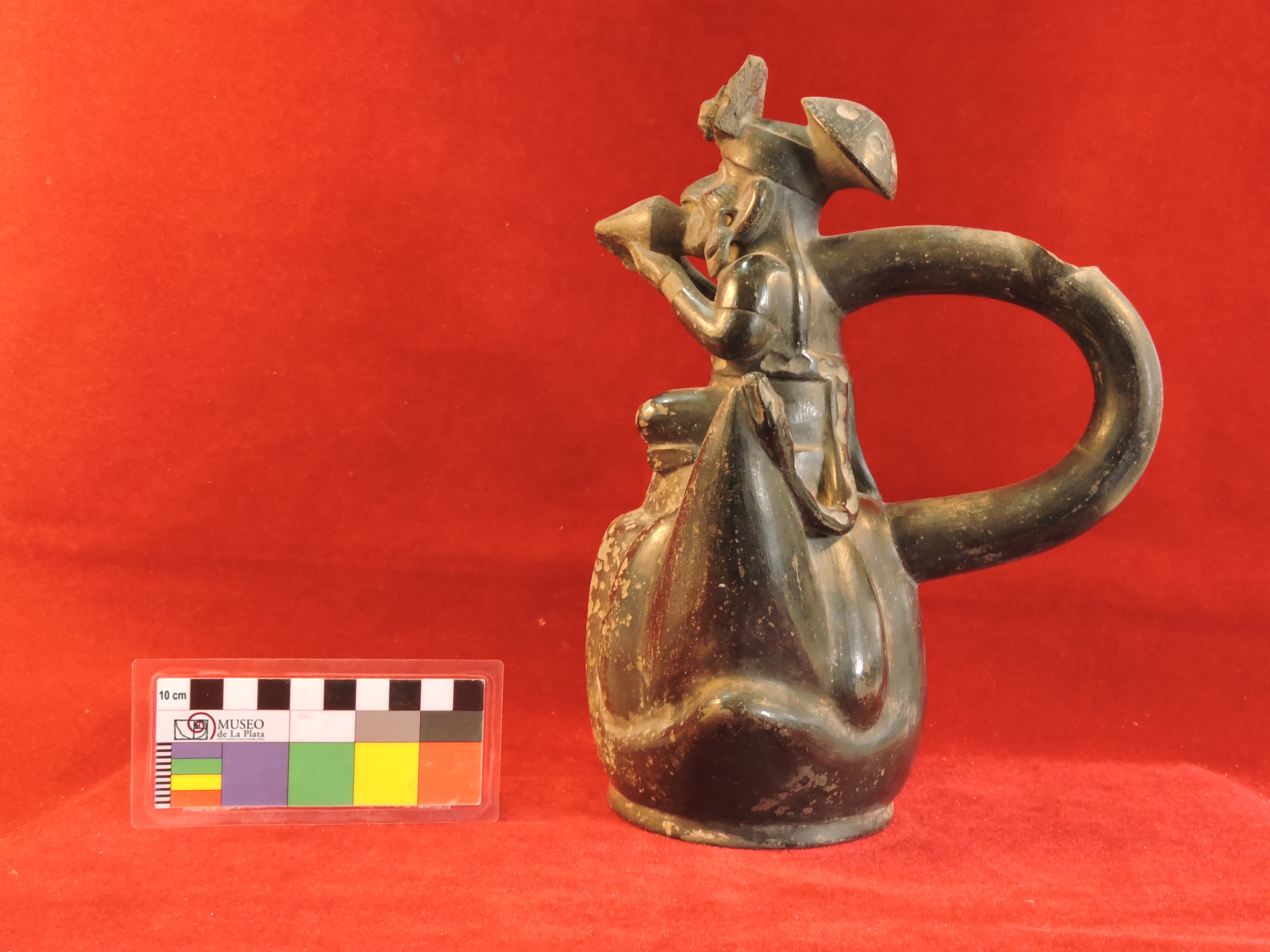 | dc.description | Vasija cerrada modelada con figura antropomorfa tocando un pututu, asa estribo fragmentada | |