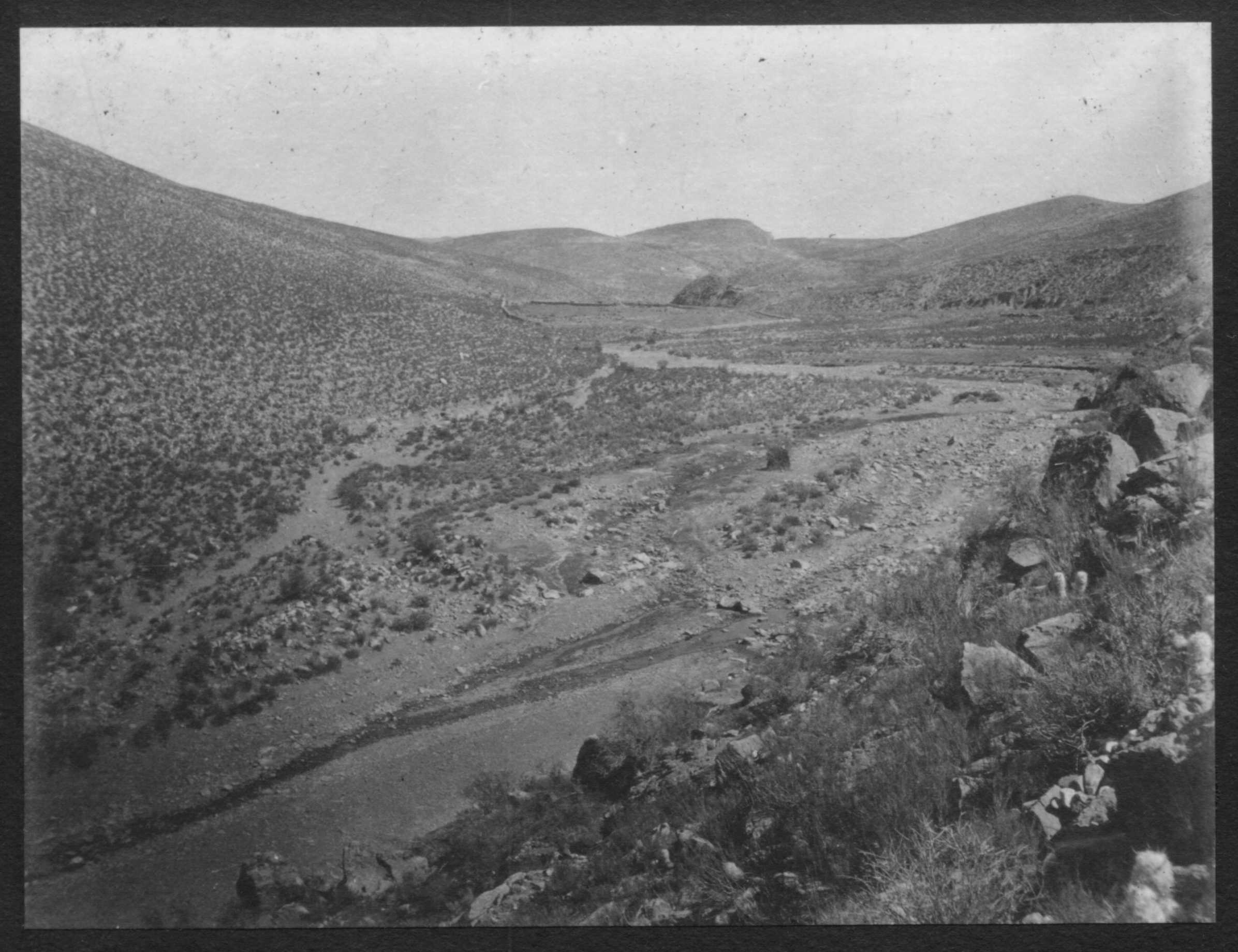 Finizzola, Segundo. 1919. "Vista desde la angostura hacia el cerro cueva". MLP-Ar-BMB-F8. Culturalis. División Arqueología, Museo de La Plata, FCNyM, UNLP.