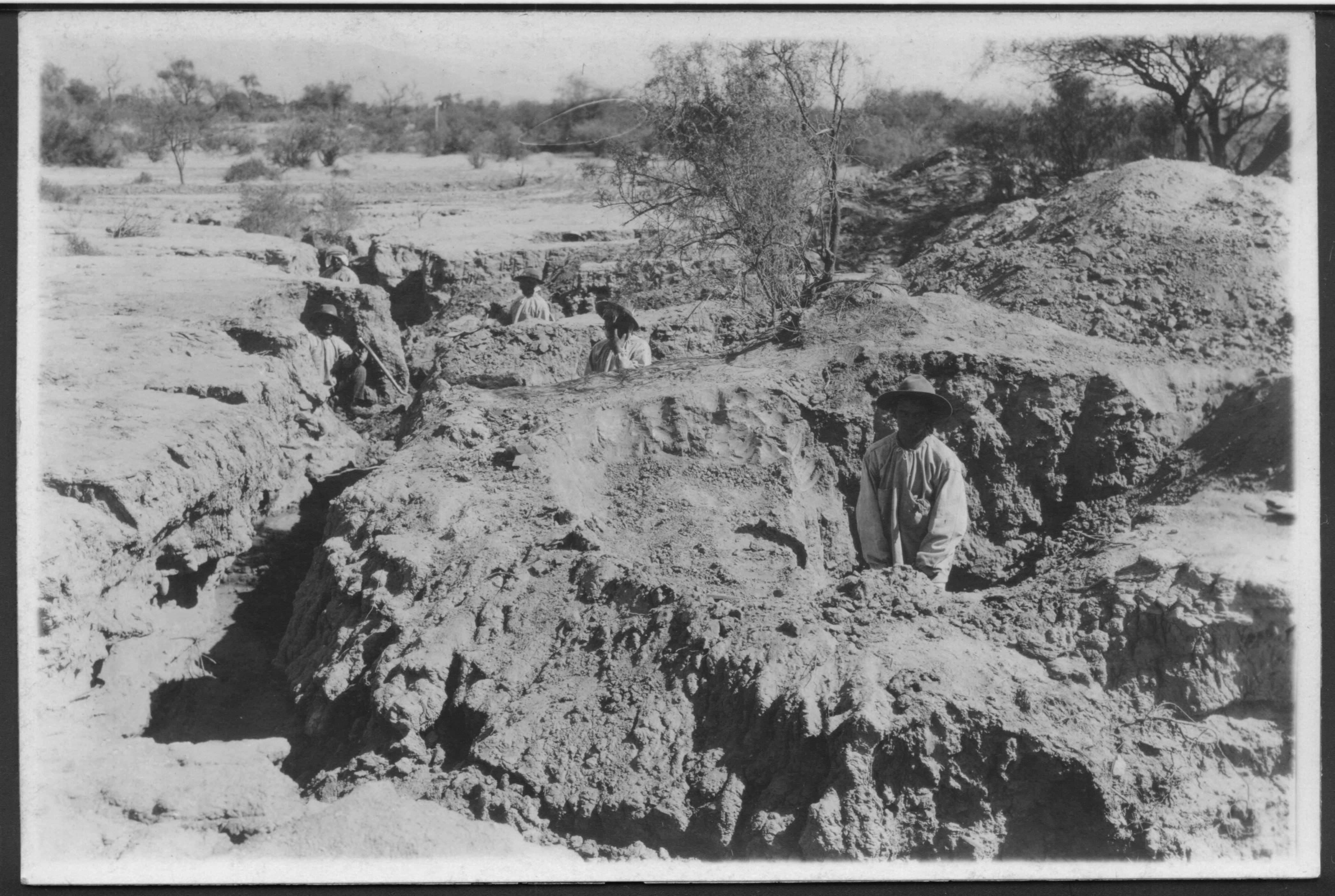 Excavación, carcava, peones, enterratorios, pozos, ciénaga, arenal