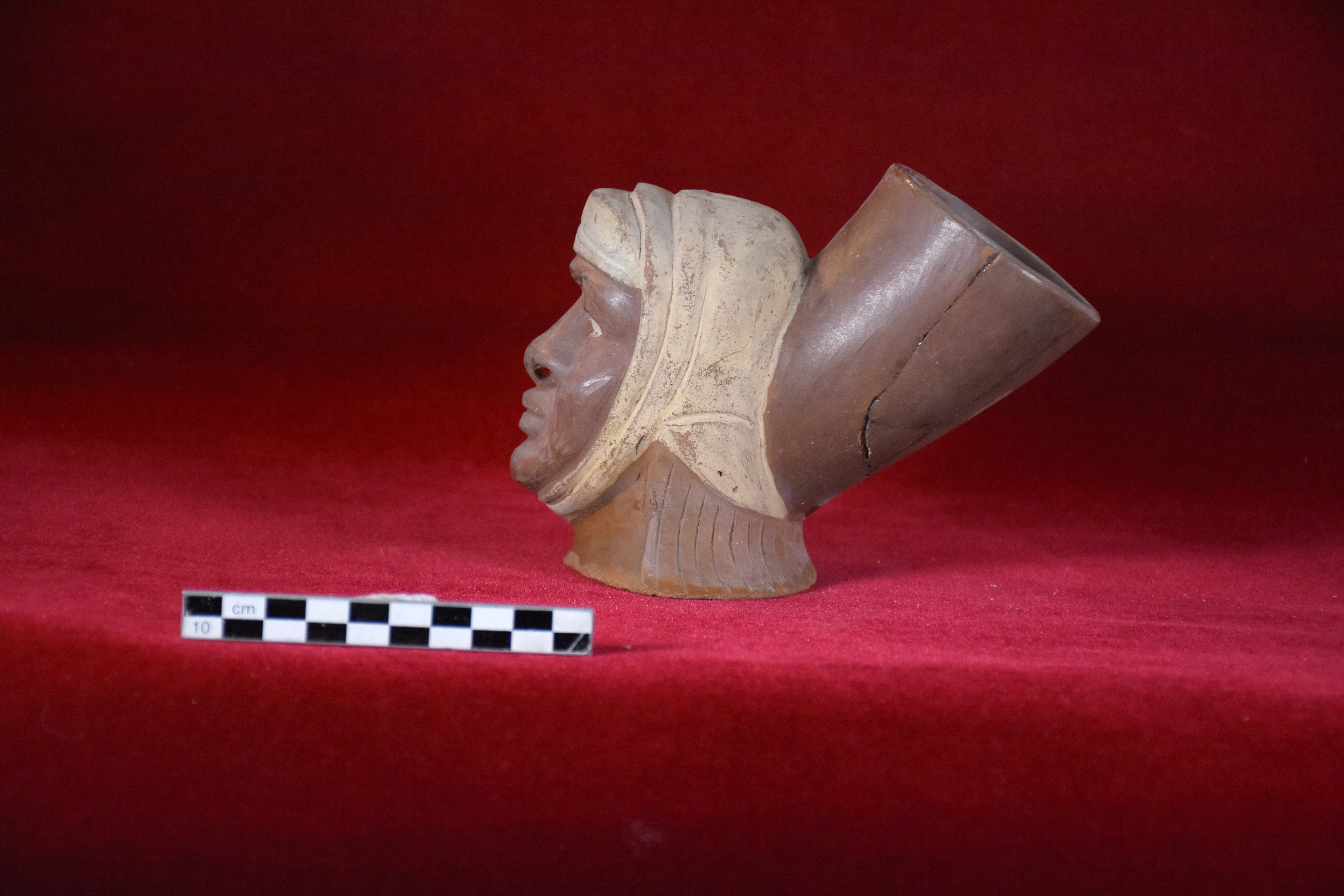 Parte superior de una vasija globular con representación de un rostro antropomorfo, vaso retrato