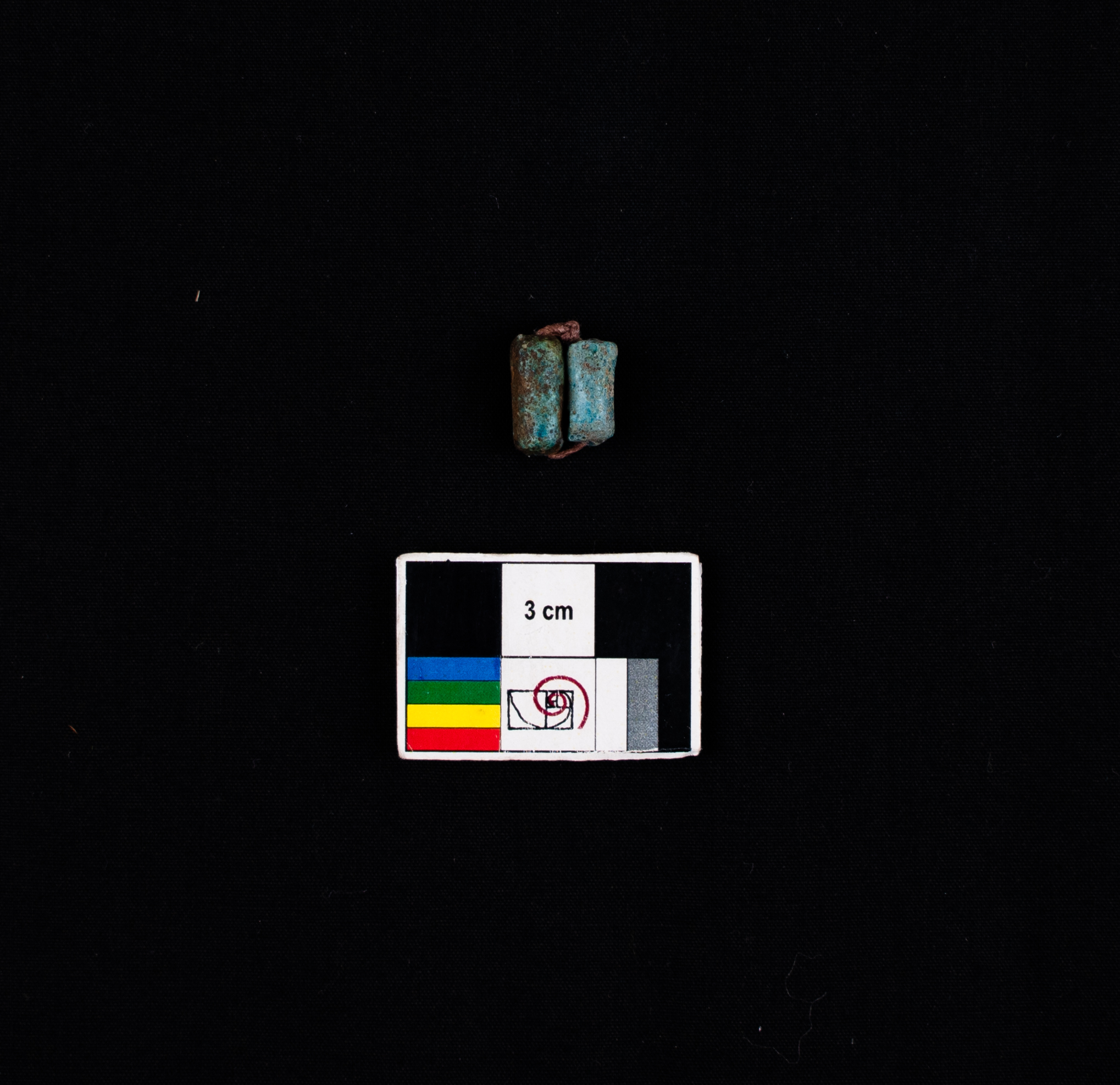 cuentas de color verde azulado unidas por un hilo marron