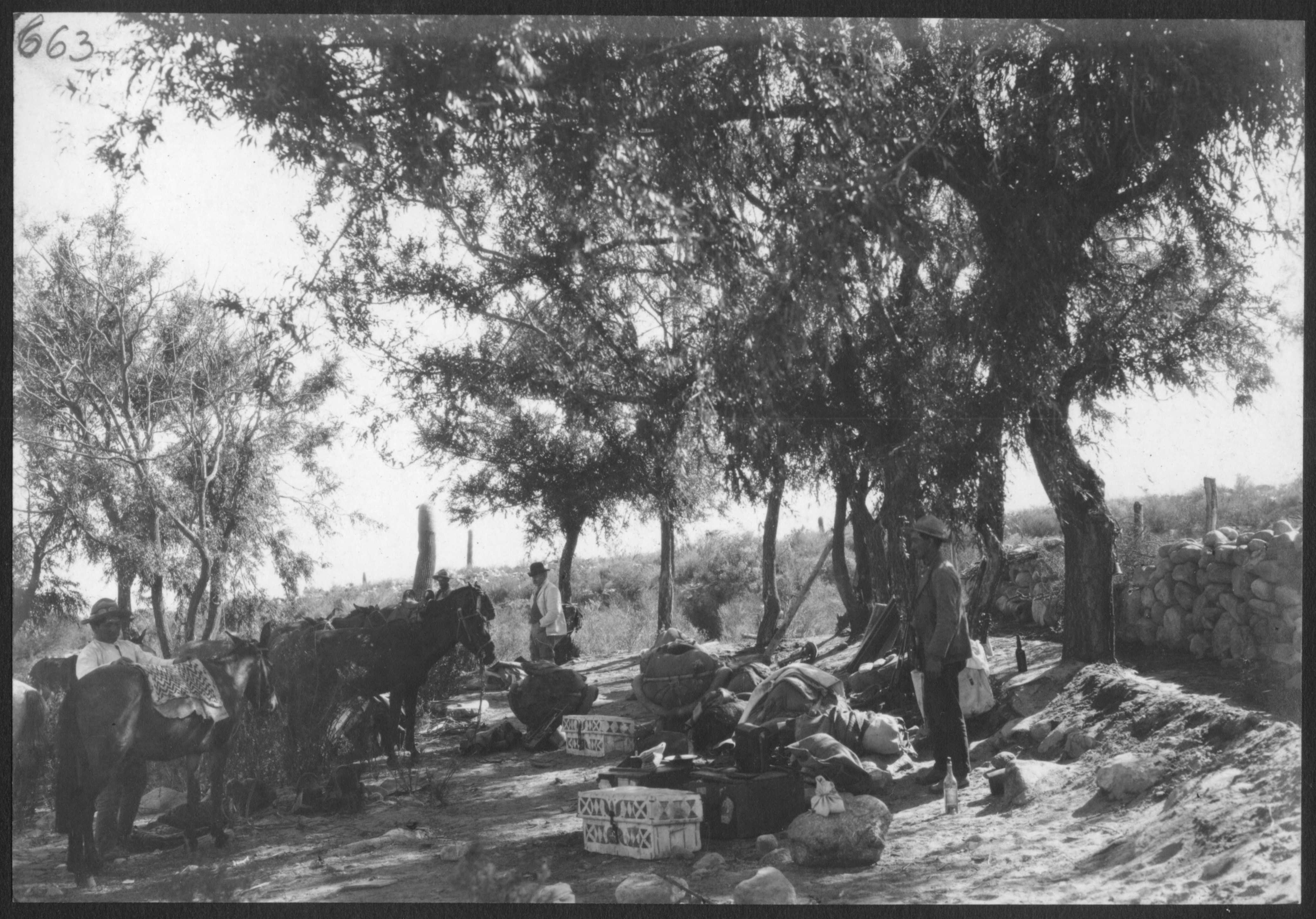 Finizzola, Segundo. 1923. "Pasada la noche, preparándose para seguir la ruta". MLP-Ar-BMB-F663. Culturalis. División Arqueología, Museo de La Plata, FCNyM, UNLP.