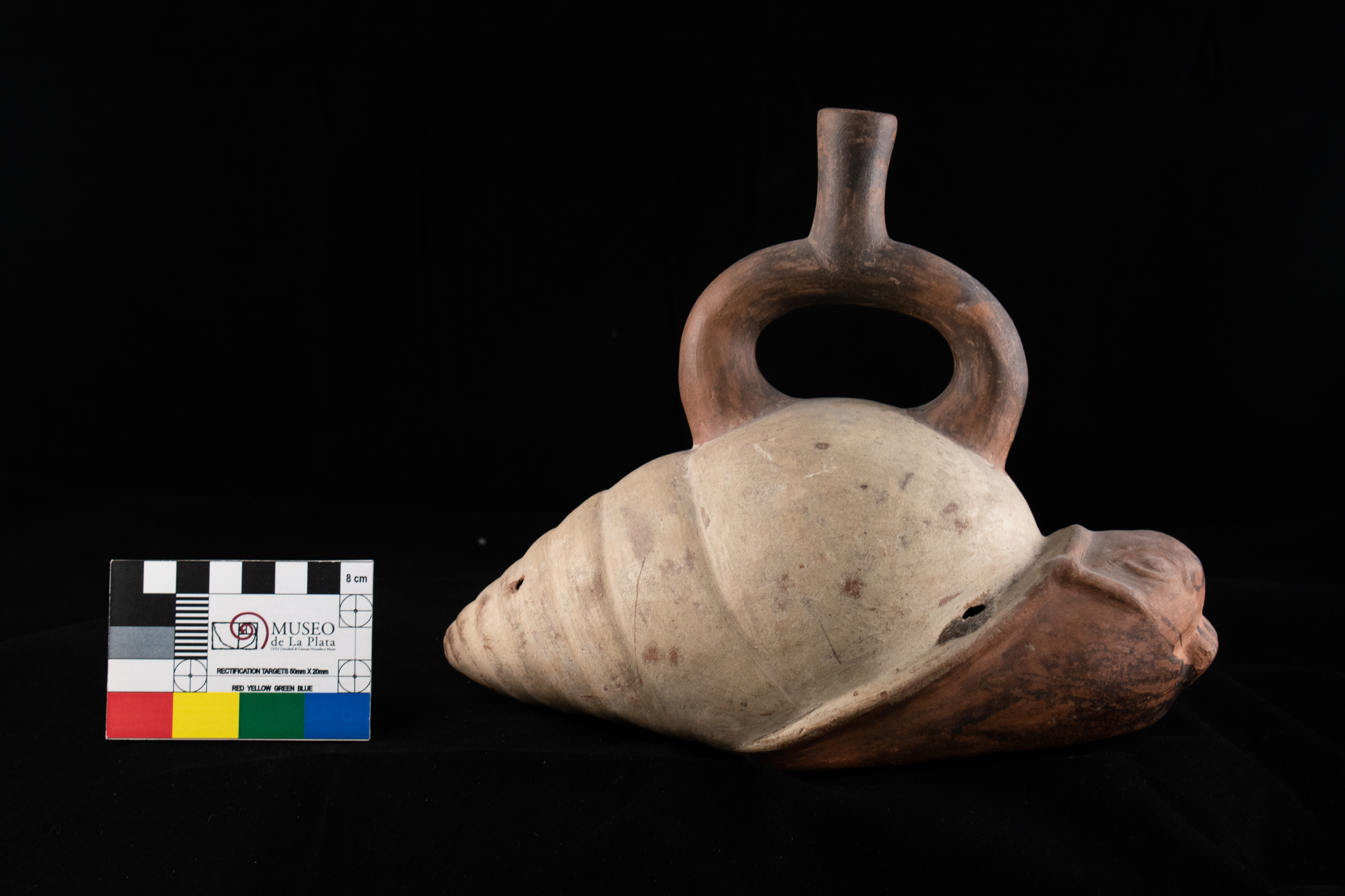 Vasija modelada zoomorfa (caracol) con asa estribo