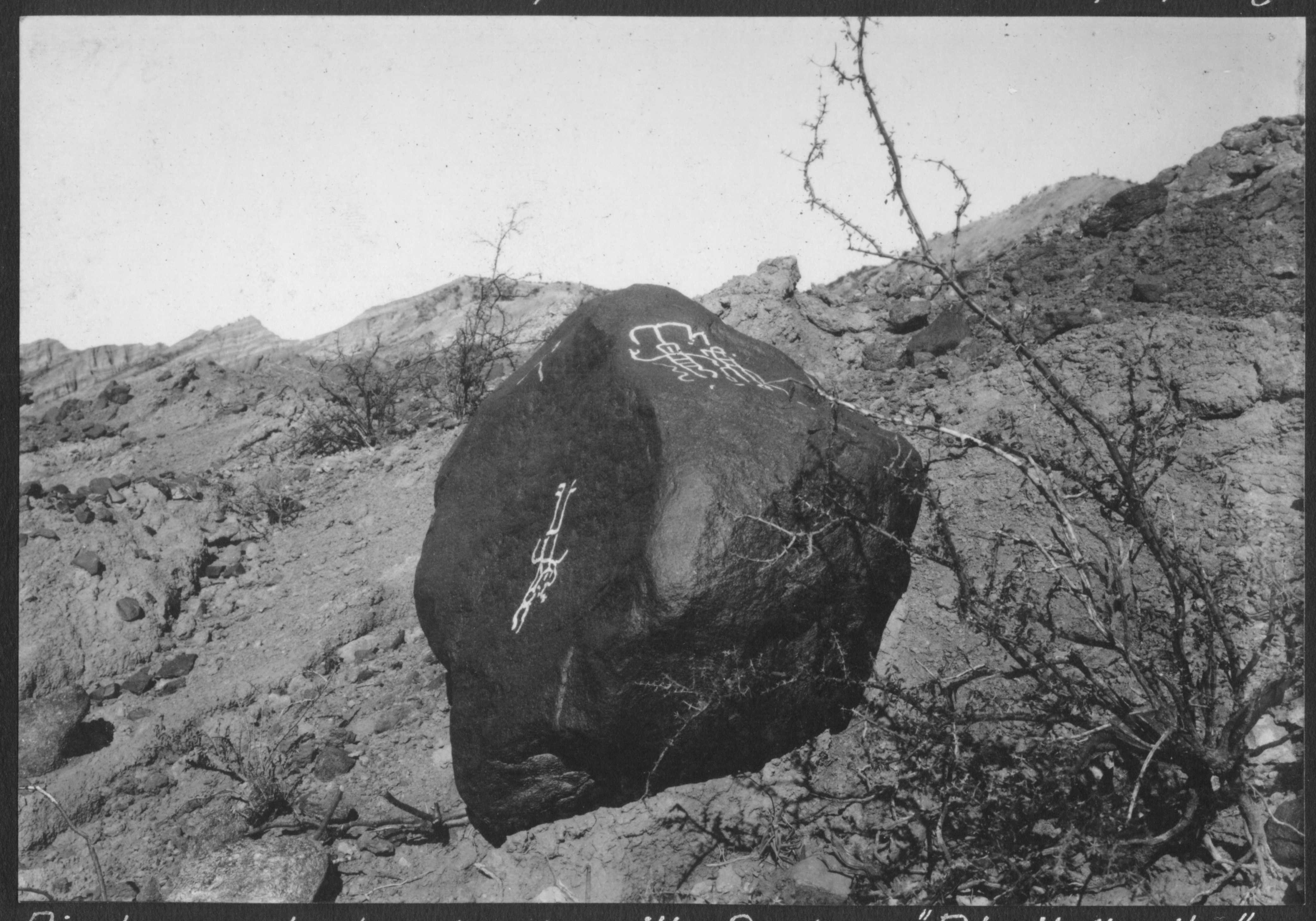 Finizzola, Segundo. 1923. "Piedra grabada sobre la orilla Sud del "Río Vallecito" (río arriba de la mesada "Agüero")". MLP-Ar-BMB-F776. Culturalis. División Arqueología, Museo de La Plata, FCNyM, UNLP.