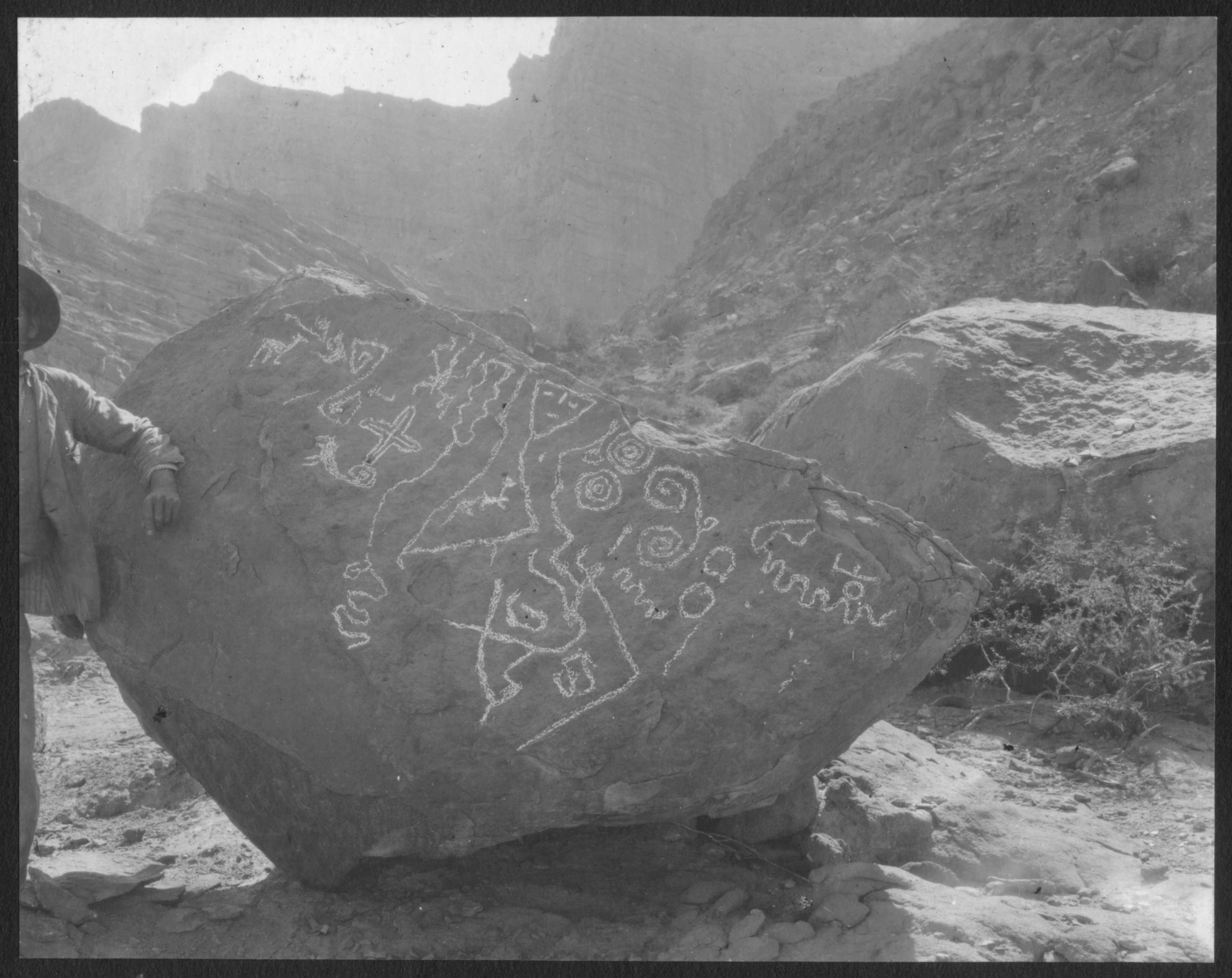 Finizzola, Segundo. 1923. "Petroglifo al pie de la pendiente del Sud del Cro. Colorado. (quebrada Villavil).". MLP-Ar-BMB-F480. Culturalis. División Arqueología, Museo de La Plata, FCNyM, UNLP.