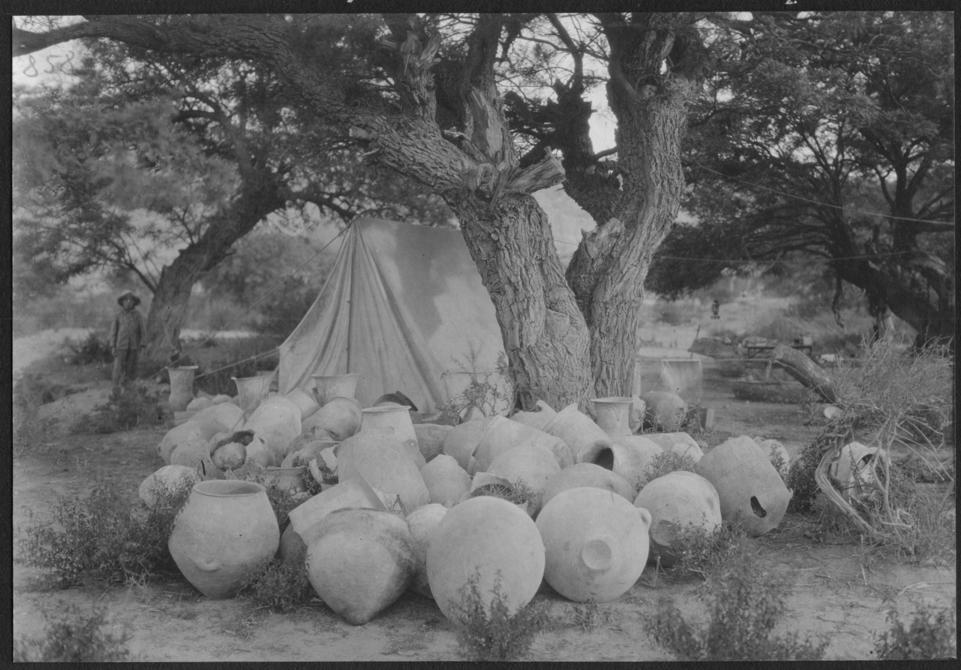 Finizzola, Segundo. 1923. "Urnas en el campamento antes de ser encajonadas". MLP-Ar-BMB-F858. Culturalis. División Arqueología, Museo de La Plata, FCNyM, UNLP.