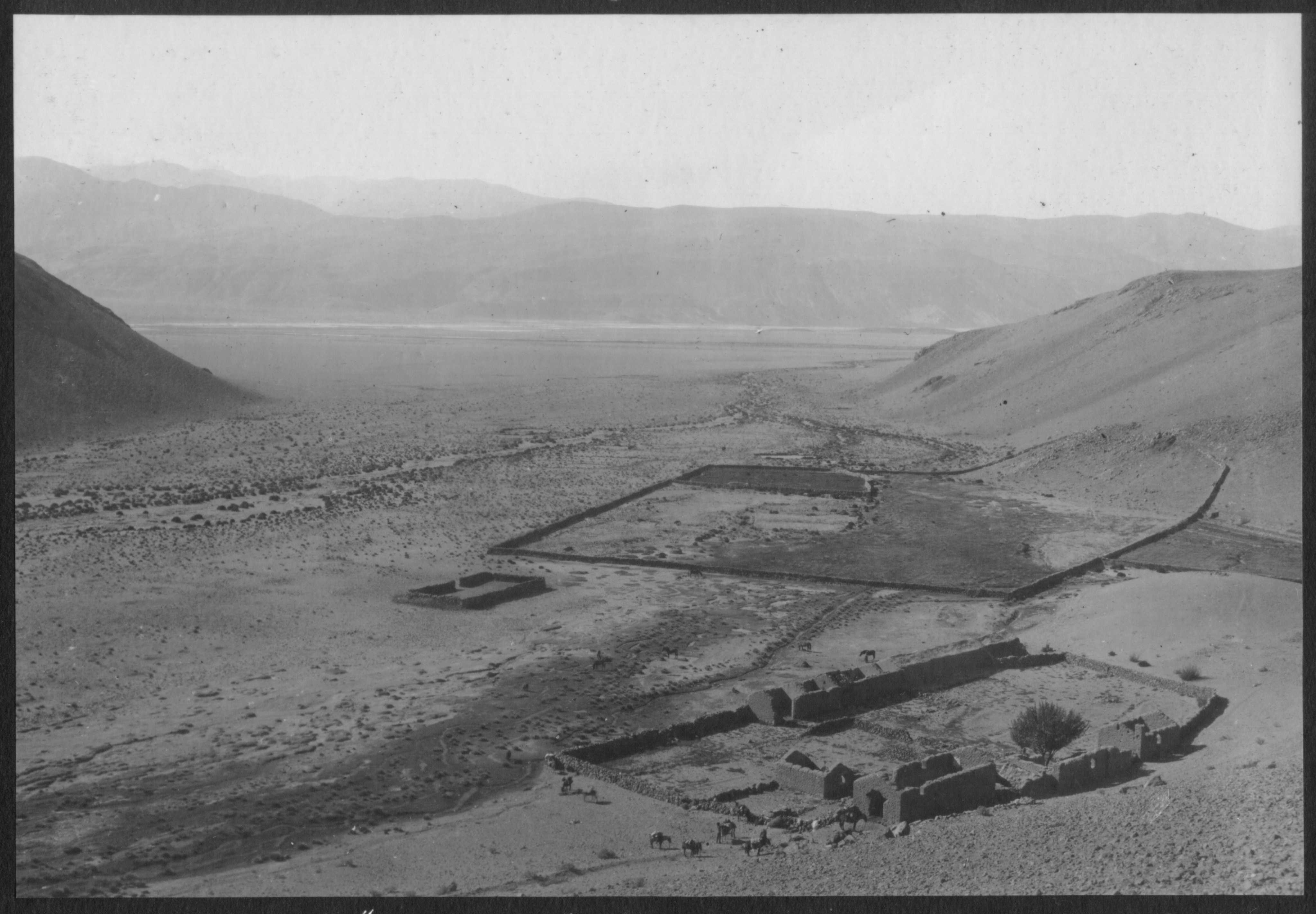 Finizzola, Segundo. 1923. "El puesto actual "Antofalla" y los restos de una colonia minera en la boca de la quebrada". MLP-Ar-BMB-F605. Culturalis. División Arqueología, Museo de La Plata, FCNyM, UNLP.