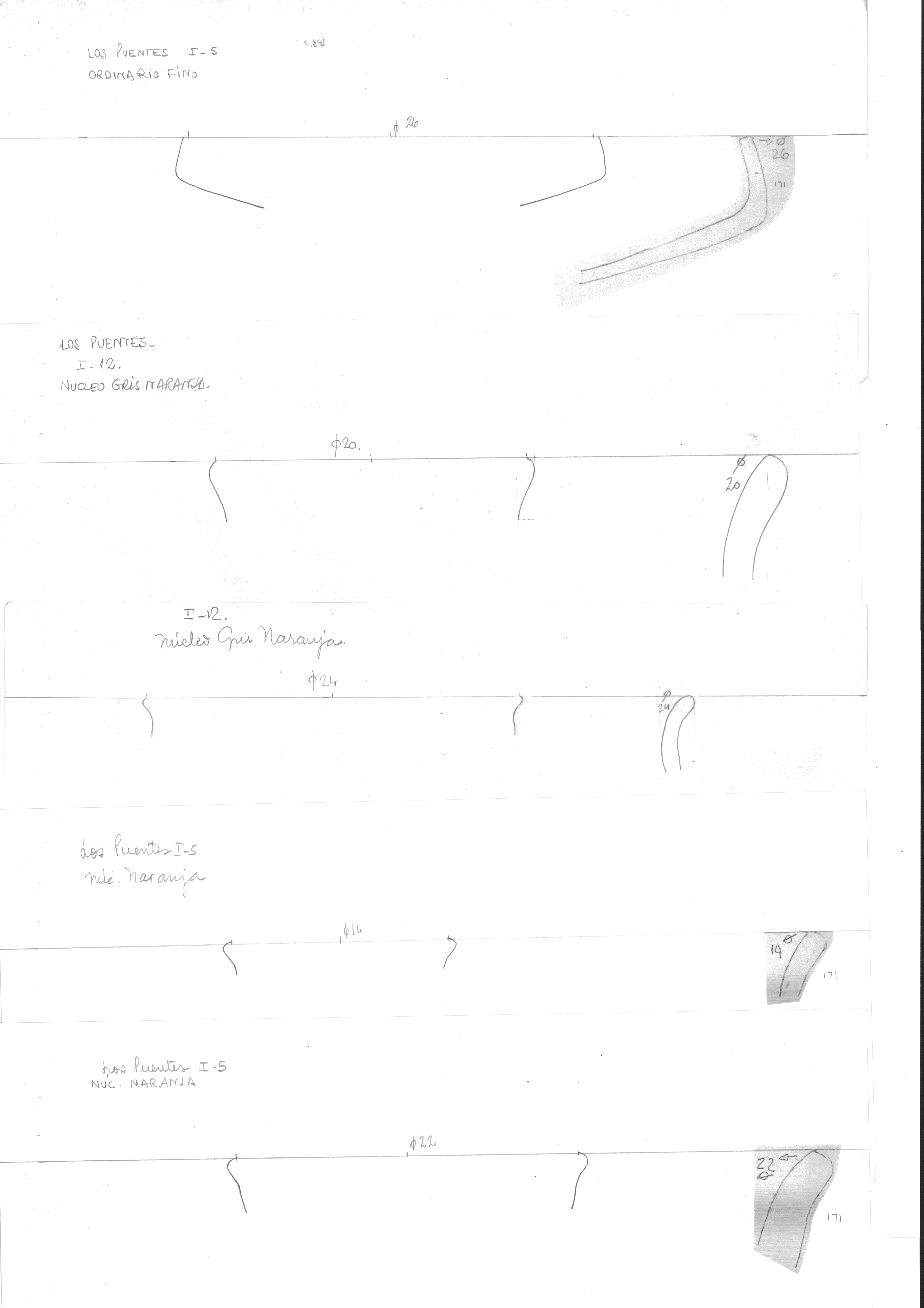 Lote de gráficas de piezas cerámicas de Los Puentes, Llanos de Moxos.