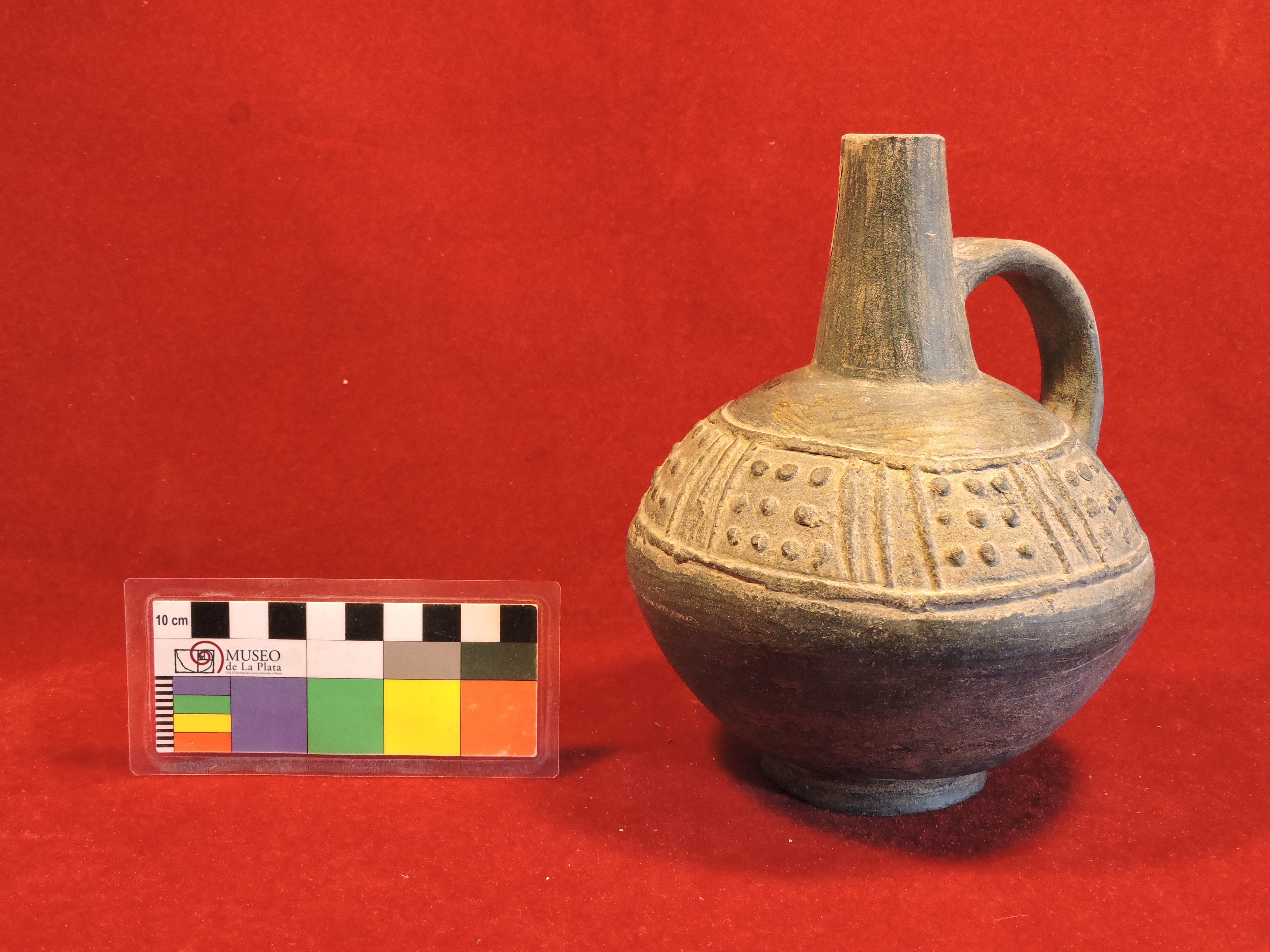 Vasija cerrada con cuello y asa lateral (cuello/cuerpo)