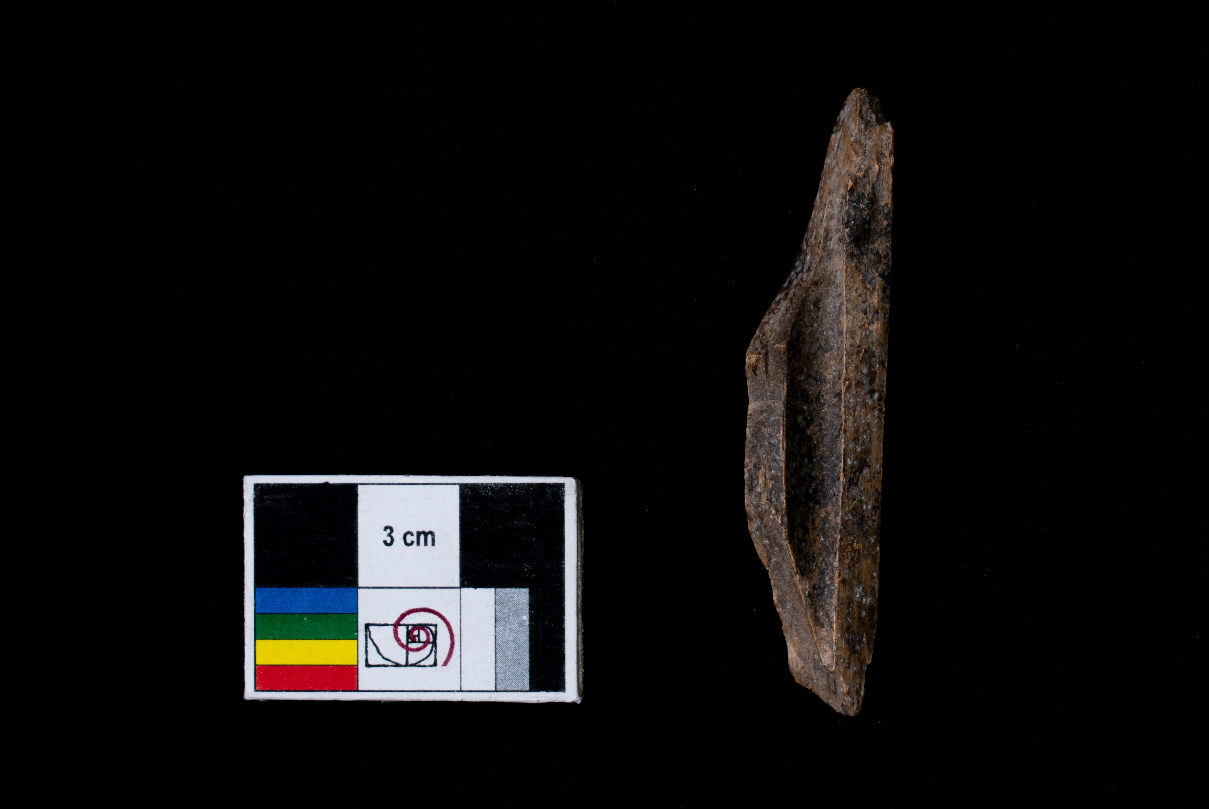Artefacto sobre hueso largo de mamífero con fractura helicoidal termoalterada