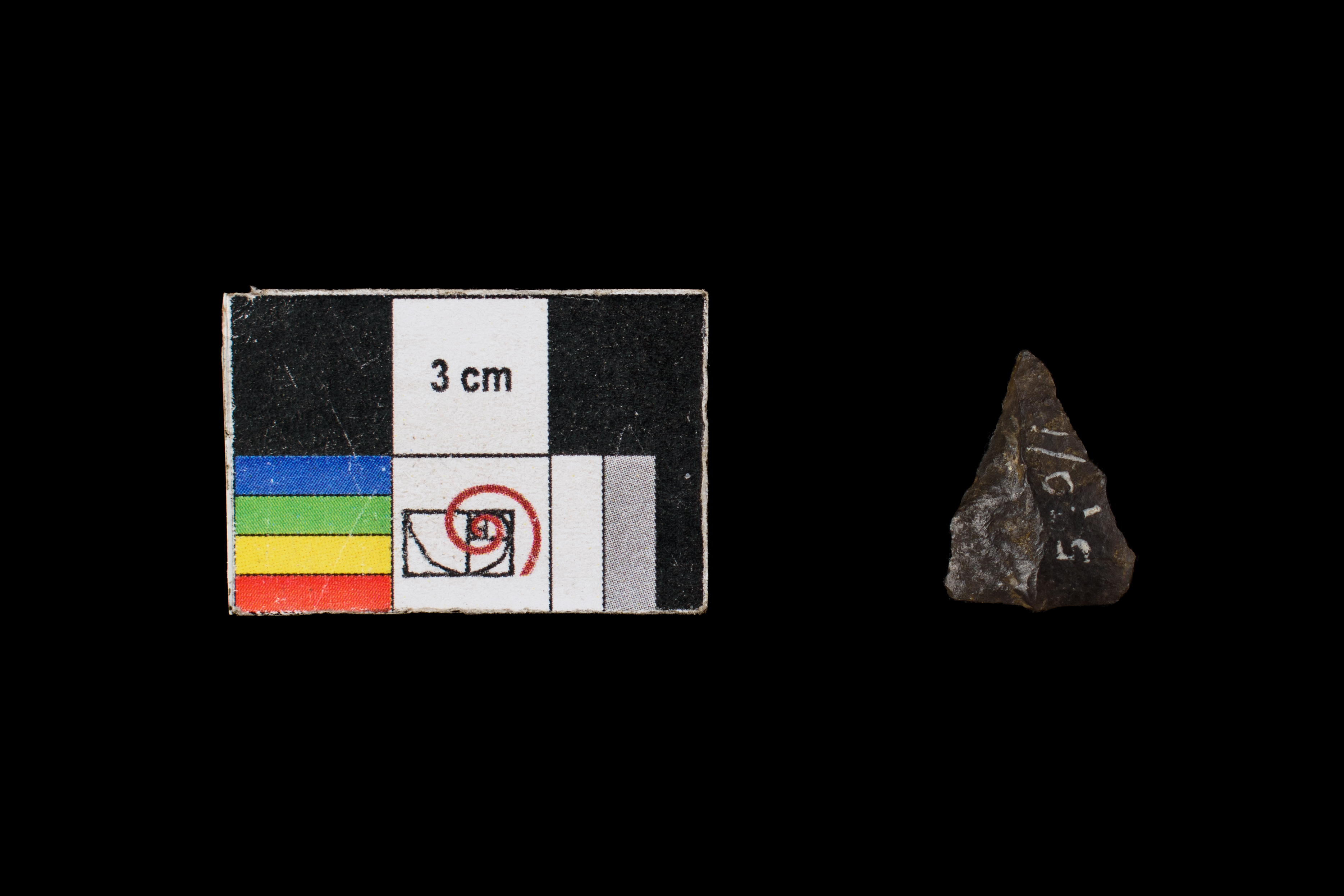 Punta apedunculada de ftanita gris, triangular pequeña