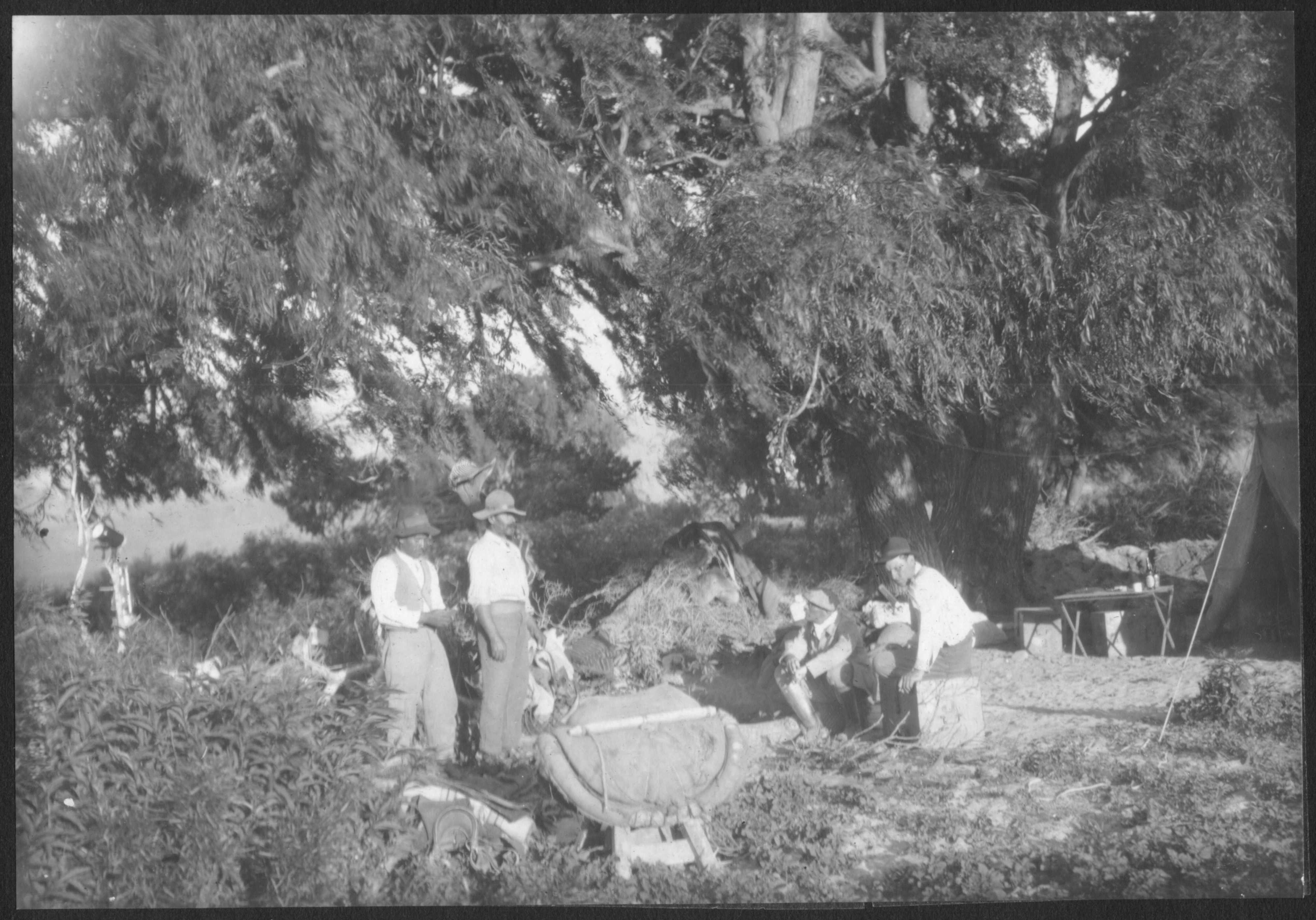 Finizzola, Segundo. 1923. "El campamento en P. de balasto bajo grandes sauces". MLP-Ar-BMB-F489. Culturalis. División Arqueología, Museo de La Plata, FCNyM, UNLP.