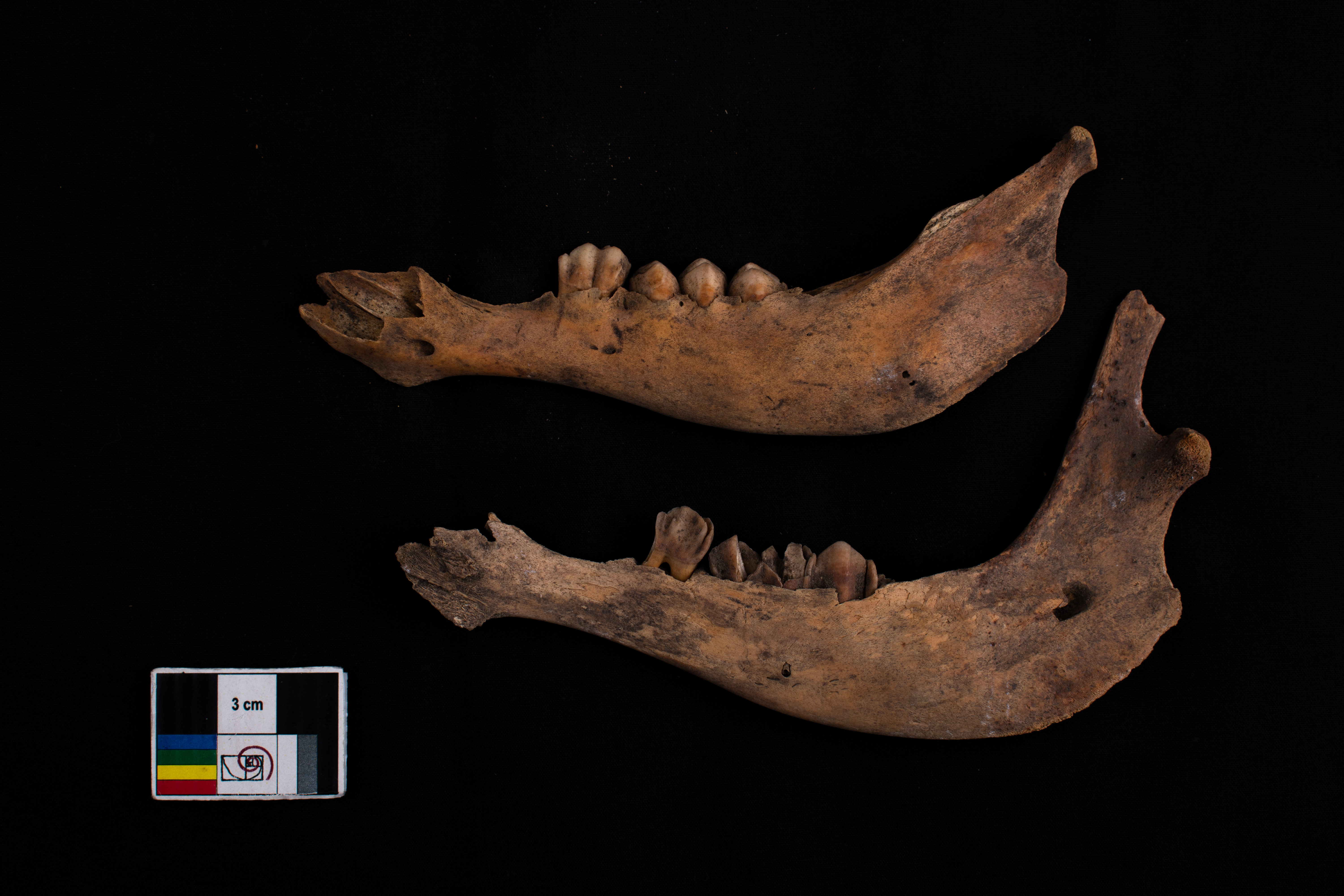 Se observan dos fragmentos de mandibulas de herviboros